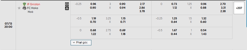 Nhà cái Châu Á đang đánh giá khả năng chiến thắng của Gnistan là cao hơn so vớicác vị khách Haka qua mức chấp là 0.25, Gnistan đang có ưu thế sân nhà nơi họ đang chơi tốt, trong khi đó Haka với phong độ không tốt và chơi tệ khi xa nhà sẻ gặp nhiều khó khăn, Gnistan hứa hẹn sẻ tận dụng tốt ưu thế đang có để hướng đến chiến thắng, lựa chọn Gnistan cho kèo châu Á.