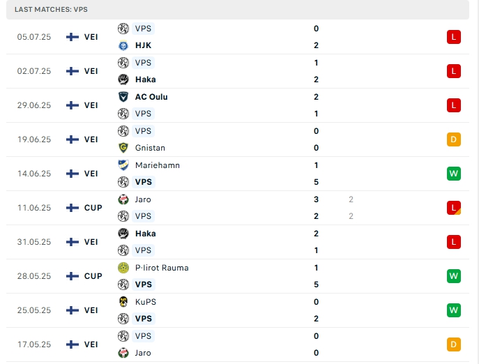 VPS Vaasa sau 14 trận đấu hàng công mang về 21 bàn thắng cùng hàng thủ nhận 21 bàn thua, 3/5 trận gần nhất của VPS Vaasa khép lại từ 3 bàn thắng trở lên và cả 5 trận xa nhà của họ cũng vượt mốc trên 3 bàn, những trận đấu có sự góp mặt của VPS Vaasa thường diễn ra hấp dẫn với nhiều bàn thắng.