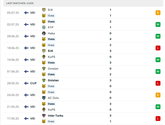 Phong độ gần đây Ilves Tampere vs VPS Vaasa