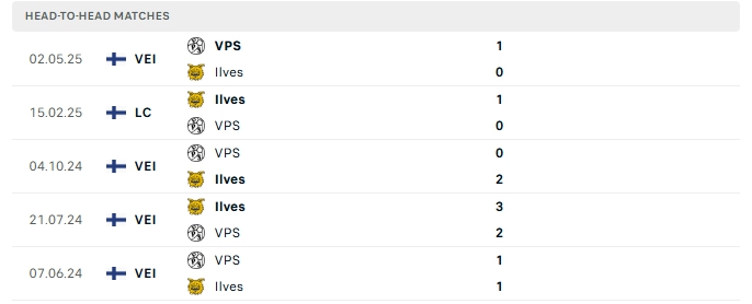 Lịch sử đối đầu của Ilves Tampere vs VPS Vaasa