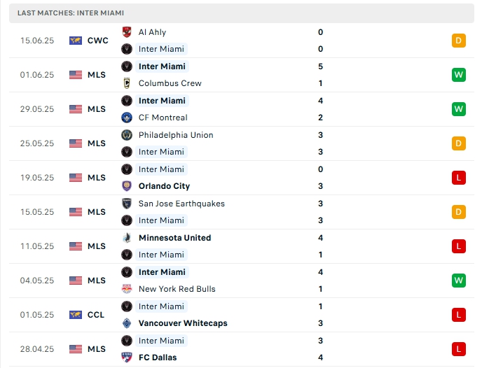 - Phong độ Inter Miami
