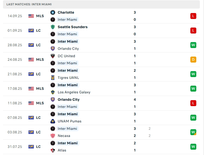 • Phong độ Inter Miami