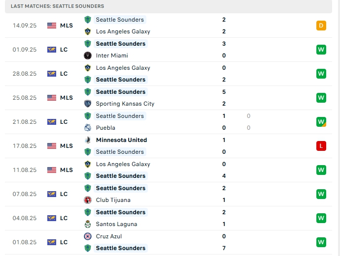 • Phong độ Seattle Sounders
