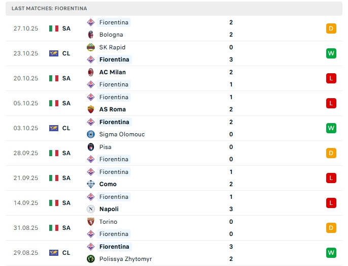 - Phong độ Fiorentina