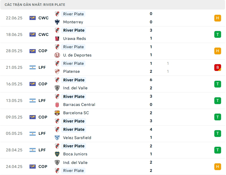River Plate là đại diện đến từ Argentina, sau 2 lượt trận họ mang về 3 bàn thắng cùng hàng thủ nhận 1 bàn thua, ở trận ra quân họ có được chiến thắng trước Urawa Reds nhưng ở lượt đấu thứ 2 thì họ chỉ có cho mình trận hoà 0-0 trước Monterey mà thôi. Để chắc chắc có vé đi tiếp thì River Plate cần ít nhất 1 trận hoà, tuy vậy trước đối thủ có hàng công mạnh thì chủ động phòng ngự sẽ khiến họ có nhiều nguy cơ bị thủng lưới, River Plate sẽ chơi tấn công ở 90 phút sắp tới.