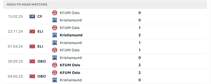 Những màn đụng độ giữa Kristiansund và KFUM Oslo thường diễn ra với sự chặt chẻ và ít bàn thắng được tạo ra, cụ thể ở 4/5 lần gặp nhau gần nhất của hai đội và 2 lần đón tiếp KFUM Oslo trên sân của Kristiansund khép lại không quá 2 bàn.