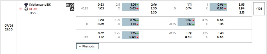 Bảng tỷ lệ kèo bóng đá trận đấu Kristiansund vs KFUM Oslo