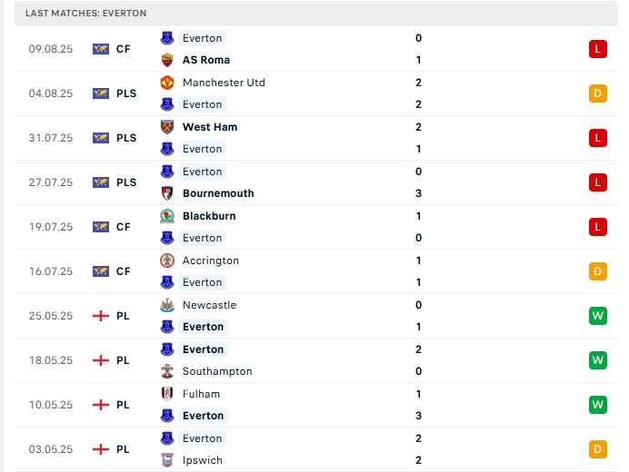 - Phong độ Everton
