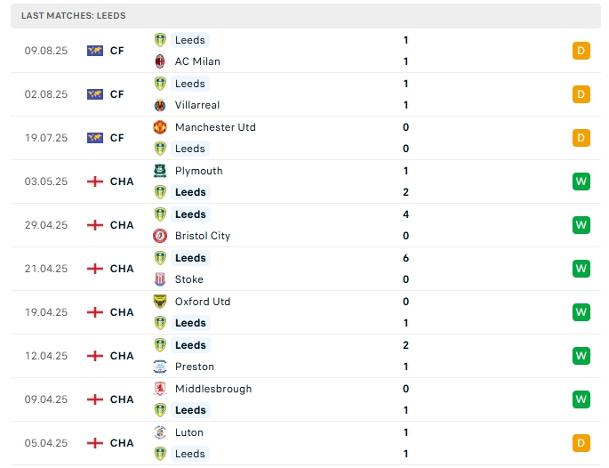 Leeds sau chiến dịch thành công ở mùa giải trước họ đang đặt quyết tâm cao ở mùa giải năm nay, dù vậy nhà ĐKVĐ hạng Nhất Anh không được đánh giá cao, trước khi bước vào mùa giải mới họ có cho mình 3 trận giao hữu với thành tích toàn hòa, dù vậy những đối thủ mà Leeds chạm trán được đánh giá cao trong đó có cả Man Utd, AC Milan và Villarreal, trên sân nhà của mình Leeds đang chơi tốt và duy trì thành tích bất bại ở 9 trận gần nhất.