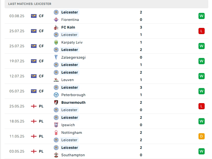 Leicester City kết thúc mùa giải 2024–25 tại vị trí thứ 18, với 25 điểm, và chính thức xuống chơi ở đấu trường Hạng Nhất Anh mùa giải năm nay, một mùa giải bết bát của bầy cáo, ở mùa giải năm nay họ đang đặt nhiều quyết tâm, ở 6 trận giao hữu vừa qua Leicester City mang về 11 bàn thắng cùng hàng thủ nhận 6 bàn thua, 4/6 trận đấu đó khép lại từ 3 bàn trở lên, trên sân nhà của mình ở 2/3 trận giao hữu vừa qua đều vượt mốc 3 bàn.