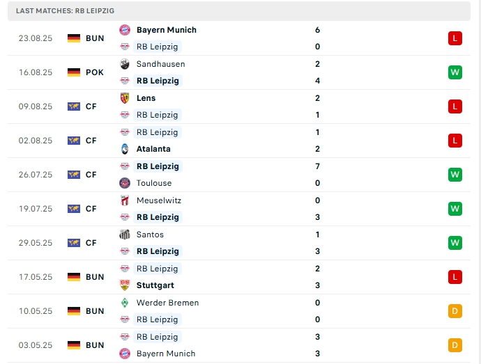 Leipzig đã gây thất vọng ở trận ra quân khi nhận đến 6 bàn thua trước Bayer Munich, hàng thủ đang là nổi lo lớn với chủ nhà, ở 2 trận gần nhất họ nhận đến 8 bàn thua, cùng hàng công có được 4 bàn thắng, cả 2 trận đấu đó khép lại trên 3 bàn thắng, trên sân nhà của mình ở 4/5 trận vừa qua cũng vượt mốc trên 3 bàn.