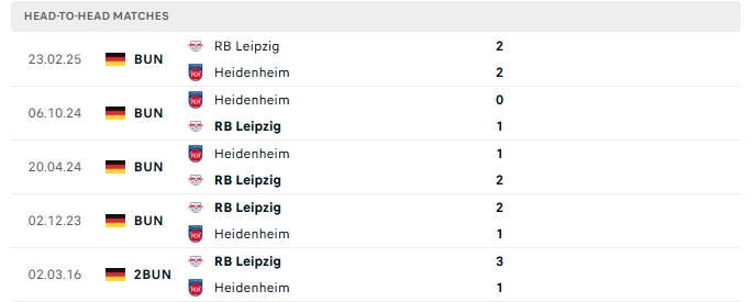 Lịch sử đối đầu của Leipzig vs Heidenheim