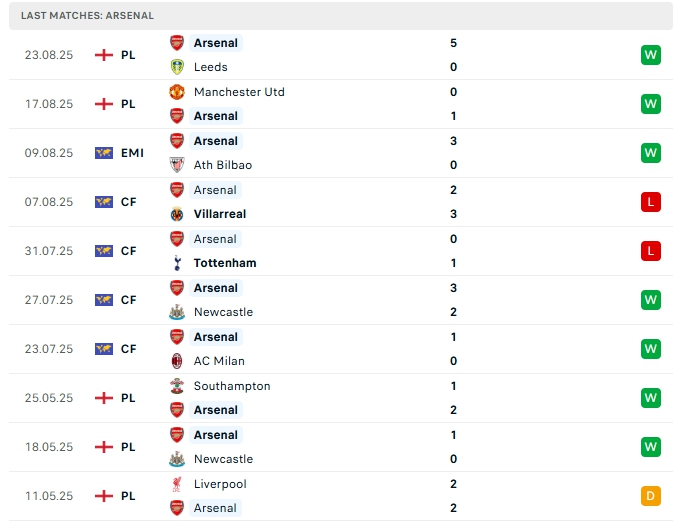 Bên kia sân, Arsenal chứng minh sức mạnh của mình ở ngày ra quân khi đánh bại Man Utd, sau đó họ tiếp tục có chiến thắng ấn tượng 5-0 trước Leeds, với 6 điểm có được Pháo thủ đang dẫn đầu trên BXH, phong độ thời gian qua của Arsenal chơi tốt với 3 chiến thắng liên tiếp, khi thi đấu xa nhà Arsenal cũng chơi tốt khi chỉ nhận đúng 1 thất bại, 1 hòa và có được 3 chiến thắng.