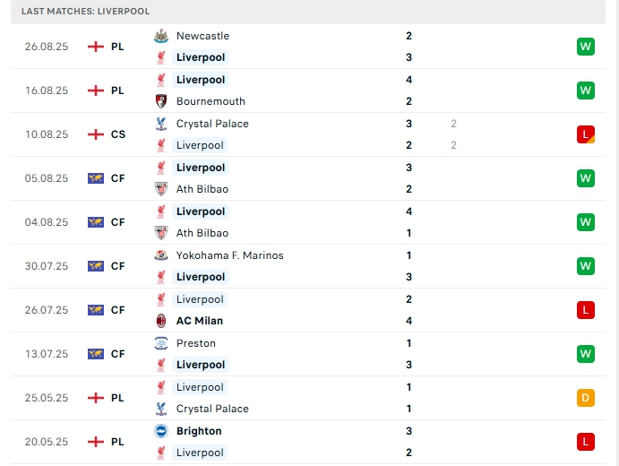 Liverpool sau 2 lượt trận đầu tiên, hàng công của đội bóng này đang thể hiện sức mạnh ấn tượng khi mang về 7 bàn thắng cùng hàng thủ nhận 4 bàn thua, 2 trận đấu đó đều vượt mốc trên 3 bàn, trên sân nhà của mình ở 4/5 trận gần nhất cũng vượt mốc trên 3 bàn.