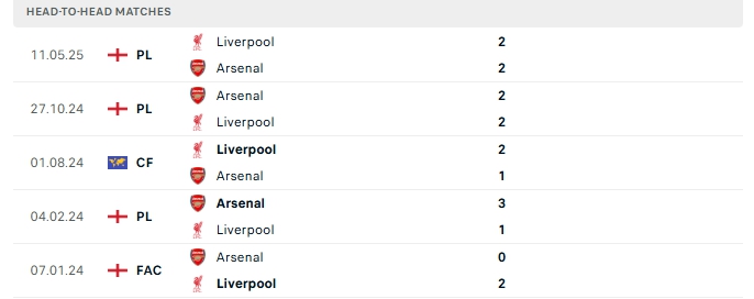 Những màn đụng độ giữa Liverpool và Arsenal thường diễn ra hấp dẫn với nhiều bàn thắng được tạo ra, cụ thể ở 4/5 lần gặp nhau gần nhất và 3/5 lần đón tiếp Arsenal trên sân của Liverpool khép lại vượt mốc trên 3 bàn.