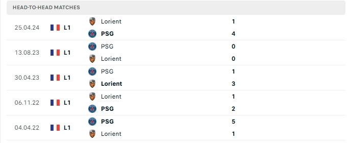 Những màn đụng độ giữa Lorient và PSG thường diễn ra hấp dẫn với nhiều bàn thắng được tạo ra, cụ thể ở 4/5 lần gặp nhau gần nhất của hai đội và 3/5 lần đón tiếp PSG trên sân của Lorient khép lại trên 3 bàn thắng.
