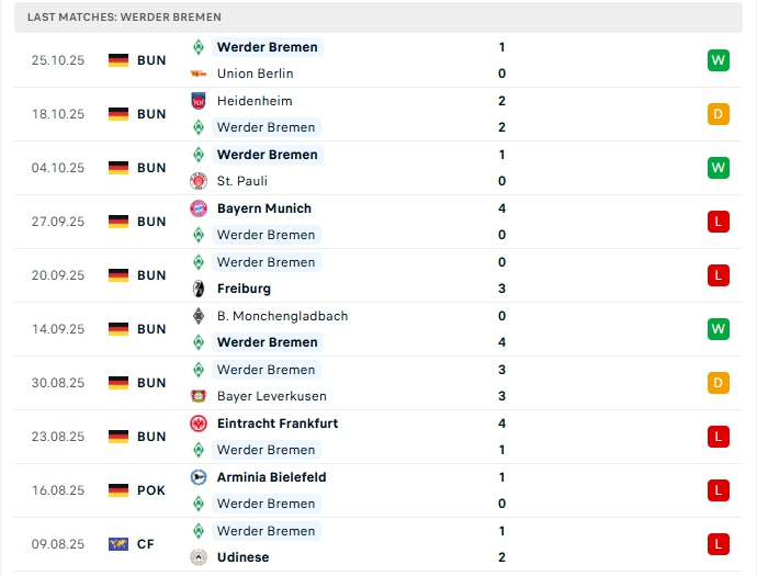 - Phong độ Werder Bremen