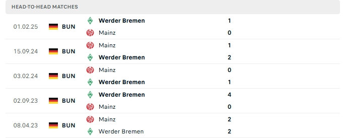 Lịch sử đối đầu của Mainz vs Werder Bremen