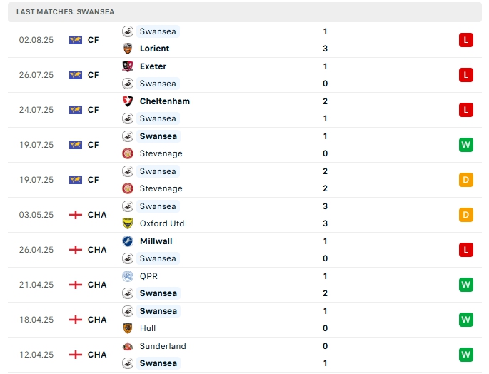 Bên kia sân, Swansea City để chuẩn bị cho mùa giải mới họ có cho mình 5 trận giao hữu với thành tích 1 chiến thắng, 1 hòa  và 3 thất bại, sự chuẩn bị không quá tốt, Swansea City ở mùa giải vừa qua cũng khởi đầu chậm chạp và ít nhiều khiến cổ động viên thất vọng, họ từng là đội bóng oanh tạc ở sân chơi cao nhất nước Anh, nhưng đã đánh mất mình ở những năm trở lại đây, và với thực lực hiện tại, Swansea City rất khó để cạnh tranh cho vị trí thăng hạng.