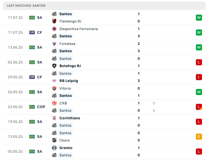 Santos sau 13 trận đấu họ mang về 12 bàn thắng cùng với hàng thủ nhận 14 bàn thua, 3/5 trận vừa qua của Santos khép lại 90 phút từ 3 bàn thắng trở lên và 2/3 trận xa nhà gần nhất cũng có kết quả tương tự, Santos đang gặp khó ở mùa giải năm nay, họ cần nhanh chóng trở lại với vị thế của mình.