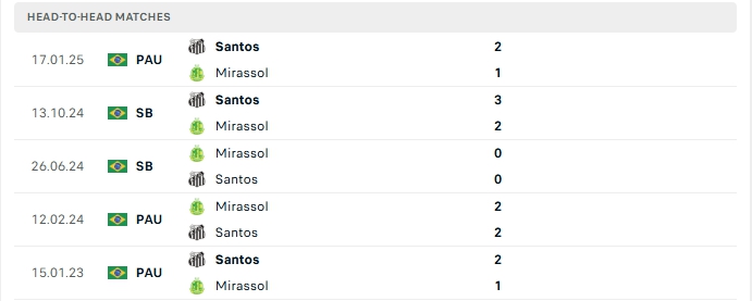 Những màn đụng độ giữa Mirassol và Santos thường diễn ra hấp dẫn với nhiều bàn thắng được tạo ra, cụ thể ở 5 lần gặp nhau gần nhất có đến 4 lần khép lại từ 3 bàn trở lên và 4/5 lần đón tiếp Santos trên sân của Mirassol cũng khép lại với kết quả tương tự.