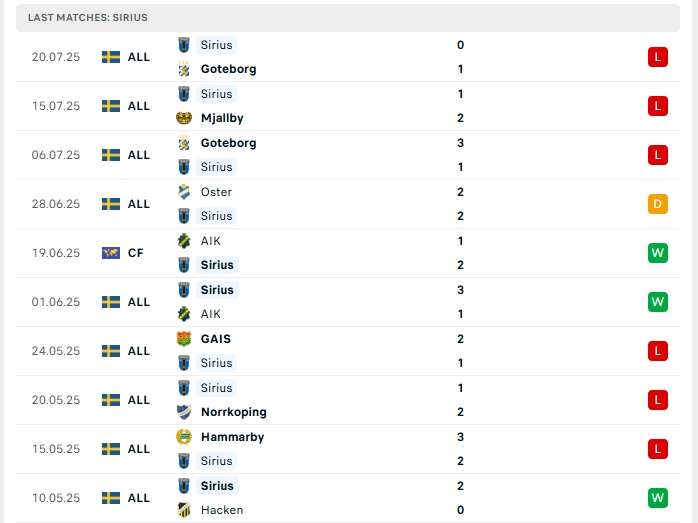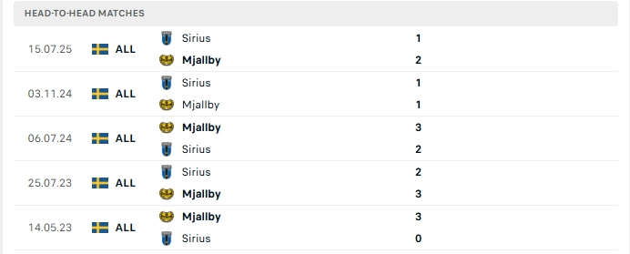 Những màn đụng độ giữa Mjallby AIF và Sirius thường diễn ra hấp dẫn với nhiều bàn thắng được tạo ra, cụ thể ở 4/5 lần gặp nhau gần nhất của hai đội khép lại từ 3 bàn trở lên và cả 5 lần đón tiếp Sirius trên sân của Mjallby AIF khép lại chạm mốc trên 3 bàn.