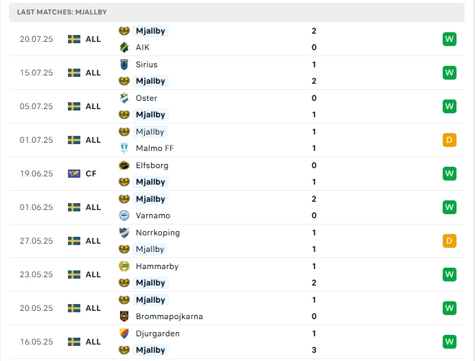Mjallby AIF sau 17 lượt trận họ mang về 12 chiến thắng, 4 hòa và nhận 1 thất bại có được 40 điểm và đang dẫn đầu trên BXH, Mjallby AIF đang có một mùa giải ấn tượng khi bất bại ở 10 trận đã qua, trên sân nhà của họ Mjallby AIF đang có được chuỗi bất bại sau 8 trận với 6 chiến thắng cùng 2 hòa.