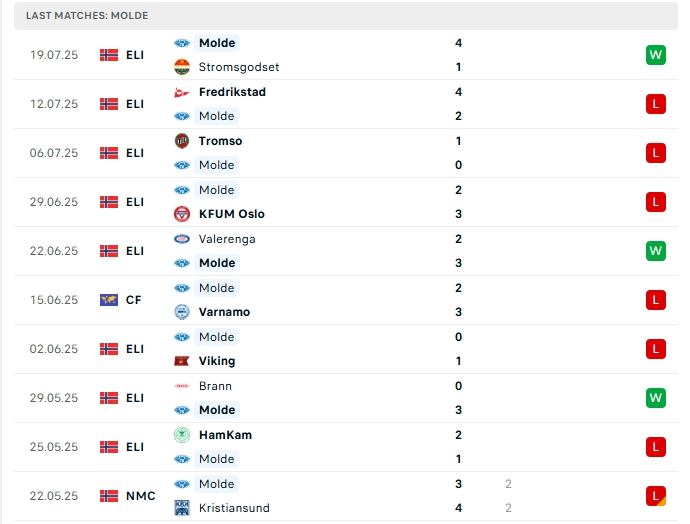 Molde sau 15 lượt trận họ mang về 5 chiến thắng, 2 hòa và 8 thất bại có được 17 điểm và đang xếp vị trí thứ 13 trên BXH, Molde đang sa sút không phanh ở mùa giải năm nay, phong độ thời gian qua của Molde là không tốt khi chỉ thắng 2 ở 5 trận đã qua, trong đó có 3 thất bại, trên sân nhà của mình Molde cũng đang chơi cực tệ với 4 trận thua ở 5 trận vừa qua.