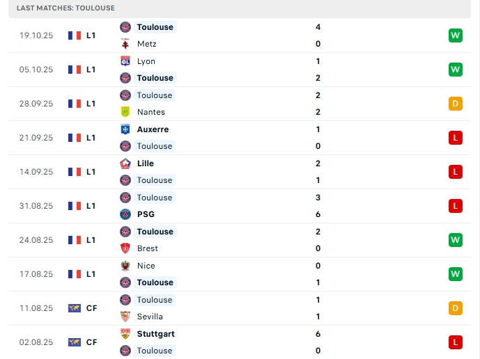 Phong độ gần đây Monaco vs Toulouse