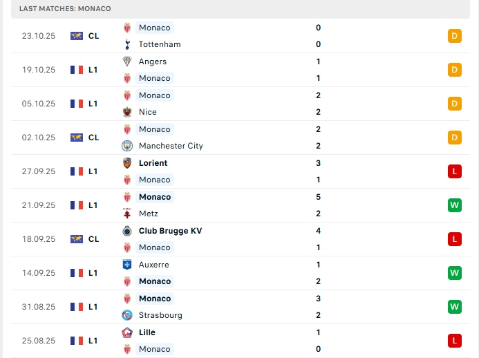 Monaco sau 8 trận đấu họ có được 4 chiến thắng và 2 hòa và 2 thất bại, mang về 14 điểm và đang xếp ở vị trí thứ 7 trên BXH, Monaco vừa trải qua chuỗi 5 trận không thắng, trong đó có 1 thất bại và 4 hòa, dù vậy trên sân nhà Monaco được đánh giá cao khi sau 4 trận họ có được thành tích bất bại với 3 chiến thắng cùng 1 hòa.