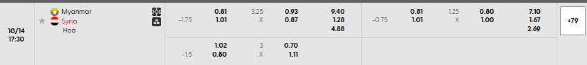Bảng tỷ lệ kèo bóng đá trận đấu Myanmar vs Syria