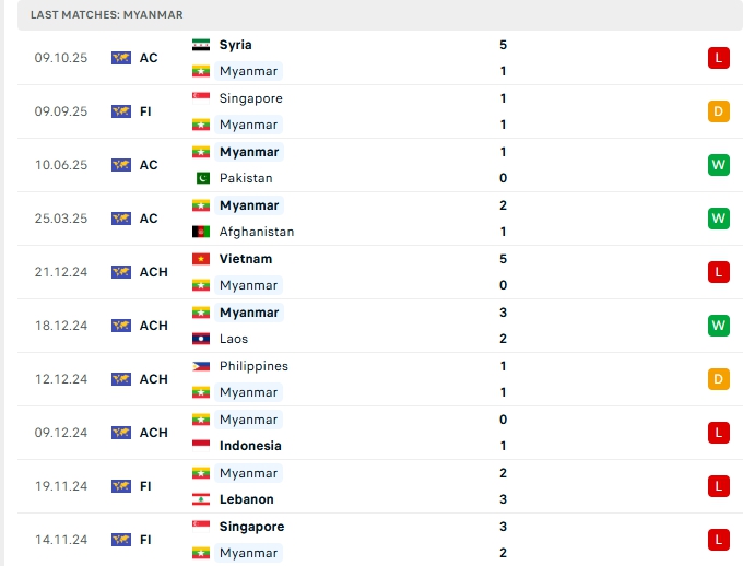 Myanmar sau 3 lượt trận họ có được 2 chiến thắng cùng 1 thất bại, có được 6 điểm và đang xếp ở vị trí thứ 2 của bảng E, kém đối thủ trong trận đấu này là 3 điểm, ở ngày ra quân Myanmar có chiến thắng 2-1 trước Afghanistan, sau đó họ tiếp tục có được 3 điểm khi đánh bại trước Pakistan, dù vậy trước đối thủ được đánh giá cao hơn là Syria thì Myanmar nhận thất bại đậm, phong độ thời gian qua của Myanmar là khá tốt, dù vậy họ không được đánh giá cao khi đón tiếp đối thủ vừa đánh bại họ đến 5-1.