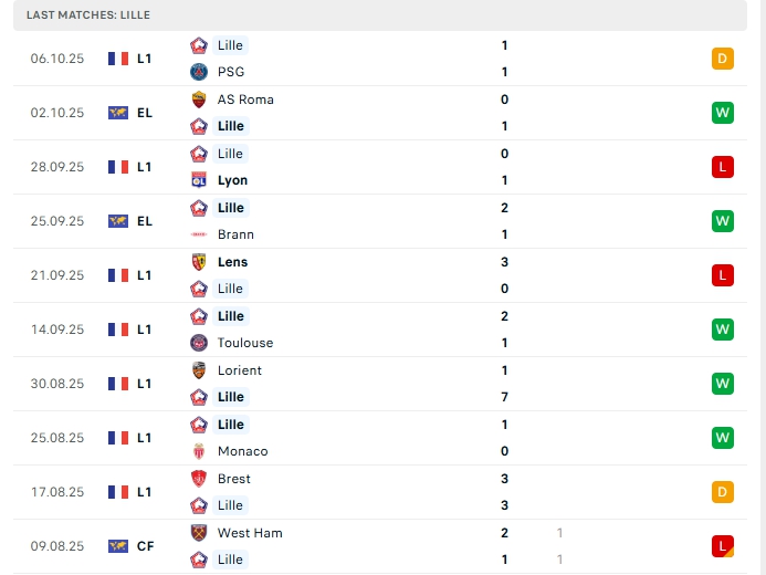 Lille sau 7 vòng đấu, hàng công đội bóng này mang về 14 bàn thắng, cùng hàng thủ nhận 10 bàn thua, 2/3 trận vừa qua của Lille khép lại không quá 2 lần lưới rung, Lille sở hữu hàng công chơi ấn tượng nhưng họ cần sớm khắc phục điểm yếu nơi hàng thủ, nếu không muốn tiếp tục rơi vào tình cảnh công làm thủ phá.