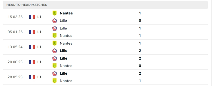 Những màn đụng độ giữa Nantes và Lille thường diễn ra chặt chẻ với ít bàn thắng được tạo ra, cụ thể ở 3/5 lần gặp nhau gần nhất của hai đội và 4/5 lần đón tiếp Lille trên sân của Nantes khép lại không quá 2 bàn thắng.