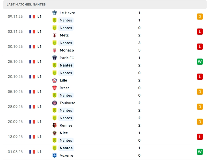 Nantes sau 12 lượt trận đầu tiên, hàng công của đội bóng này mang về 11 bàn thắng có được cùng hàng thủ nhận 18 bàn thua, 3/5 trận vừa qua của Nantes khép lại không quá 2 bàn thắng, trên sân nhà của mình ở 3/5 trận gần nhất cũng có kết quả tương tự.