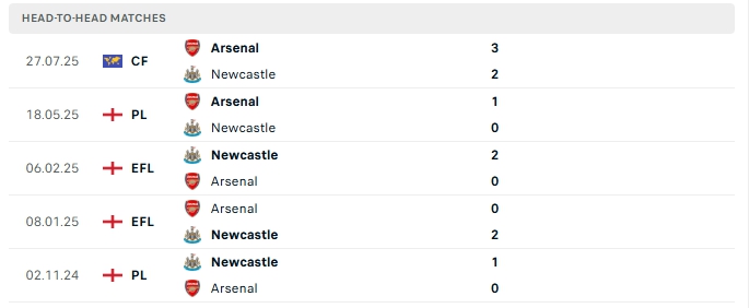 Những màn đụng độ giữa Newcastle và Arsenal thường diễn ra chặt chẻ với ít bàn thắng được tạo ra, cụ thể ở 4/5 lần gặp nhau gần nhất của hai đội và cả 5 lần đón tiếp Arsenal trên sân St. James’ Park của Newcastle khép lại không quá 2 bàn.