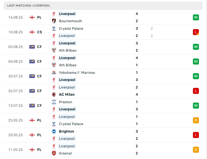 Liverpool ở vòng mở màn họ có chiến thắng ấn tượng 4-2 trước Bournemouth, hàng công của The Kop đang chơi ấn tượng với 16 bàn thắng ở 5 trận gần nhất, cùng hàng thủ nhận 8 bàn thua, cả 5 trận gần nhất của Liverpool đều vượt mốc trên 3 bàn, khi thi đấu xa nhà ở 5 trận vừa qua của họ cũng có kết quả tương tự.