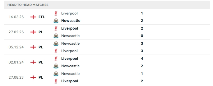 Lịch sử đối đầu của Newcastle vs Liverpool