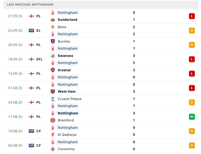 - Phong độ Nottingham Forest