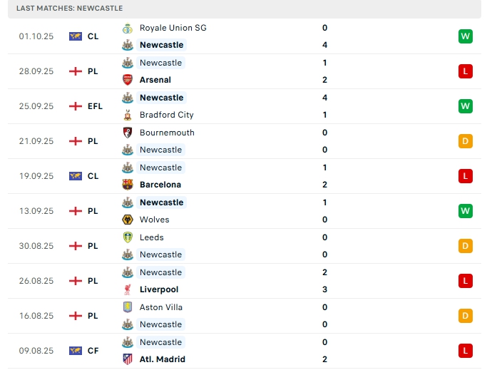 Newcastle đang có khởi đầu mùa giải không tốt, sau 6 trận đấu họ chỉ có 1 chiến thắng, 3 hòa cùng 2 thất bại, mang về 6 điểm và đang xếp vị trí thứ 15 trên BXH, dù vừa có chiến thắng ấn tượng trước Royale Union SG ở đấu trường C1, nhưng ở sân chơi quốc nội Newcastle đang để lại nhiều nổi lo, phong độ sân nhà thời gian qua của Chích chòe cũng không tốt, họ thắng 2 thua 3 ở 5 trận vừa qua.