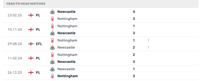 Lịch sử đối đầu của Newcastle vs Nottingham Forest