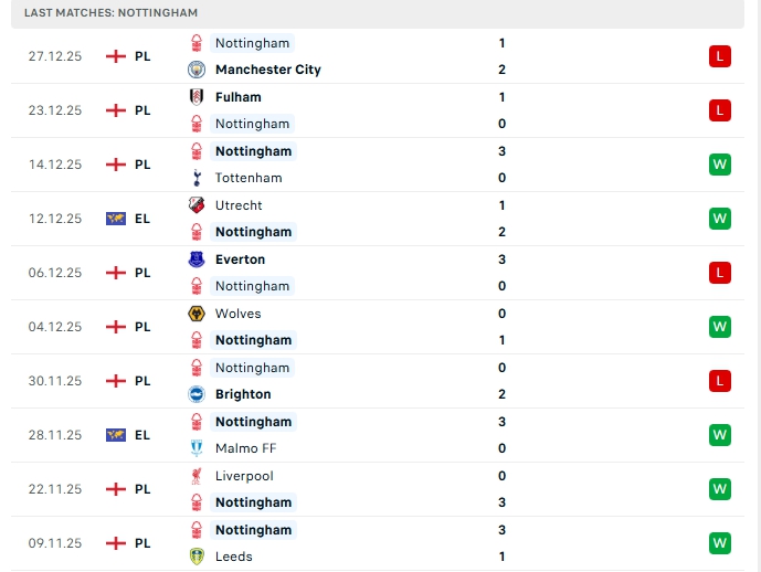• Phong độ Nottingham Forest