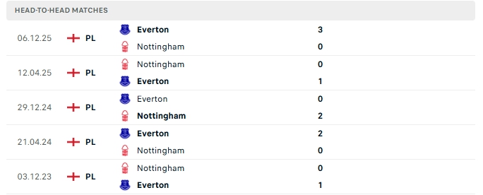 Lịch sử đối đầu của Nottingham Forest vs Everton