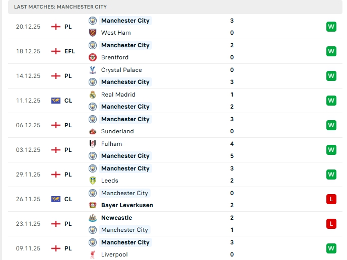 • Phong độ Man City