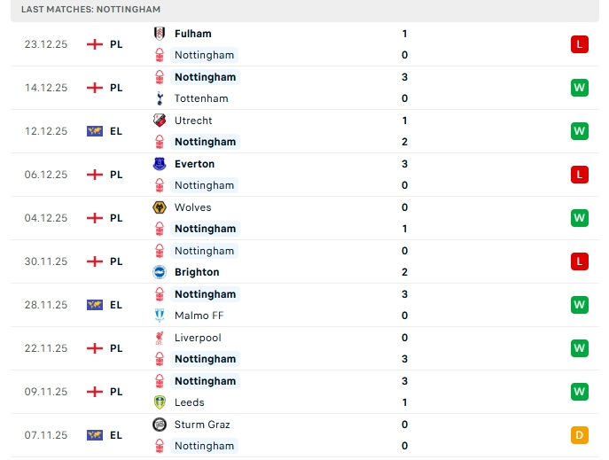 • Phong độ Nottingham Forest