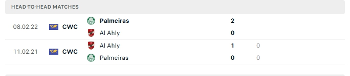 Palmeiras và Ahly Cairo có lần thứ 3 đụng độ nhau, 2 lần trước khép lại 90 phút cũng không quá 2 bàn thắng và lần này nhiều khả năng cũng sẻ là kịch bản tương tự.