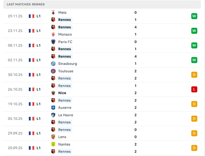 Stade Rennais sau 14 lượt trận hàng công của đội bóng này chơi khá tốt với 24 bàn thắng có được cùng hàng thủ nhận 18 bàn thua, 3/5 trận vừa qua của Stade Rennais khép lại từ 3 bàn trở lên, khi thi đấu xa nhà ở 3/5 trận gần nhất cũng có kết quả tương tự.