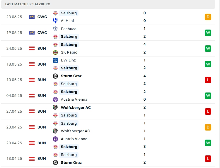 Phong độ gần đây RB Salzburg vs Real Madrid