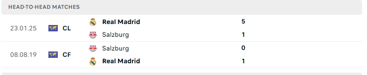 RB Salzburg và Real Madrid là những đội bóng đến từ châu âu nên họ đã gặp nhau trước đây, phần thắng luôn nghiêng về Real Madrid, lúc này thì mọi chuyện cũng không có bất ngờ bởi trong tay HLV Alonso đang có nhiều ngôi sao trong đội hình, chính vì vậy họ sẽ tiếp tục giành được kết quả có lợi trước đối thủ.