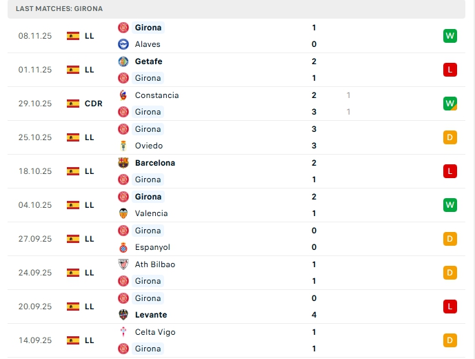 Bên kia sân, Girona ở vòng đấu gần nhất họ có chiến thắng trước 1-0 trước Alaves, đây là trận thắng thứ 2 của họ sau 12 lượt trận, cùng với 4 hòa và 6 thất bại, có được 10 điểm và đang xếp thứ 18 trên BXH, phong độ thời gian qua của Girona là không tốt, đặc biệt khi xa nhà Girona chưa có chiến thắng nào sau 5 lượt trận với 2 hòa và 3 thất bại.